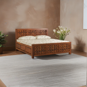 Malina- KARTAR Solid Sheesham Wood King Size Bed in Natural Finish