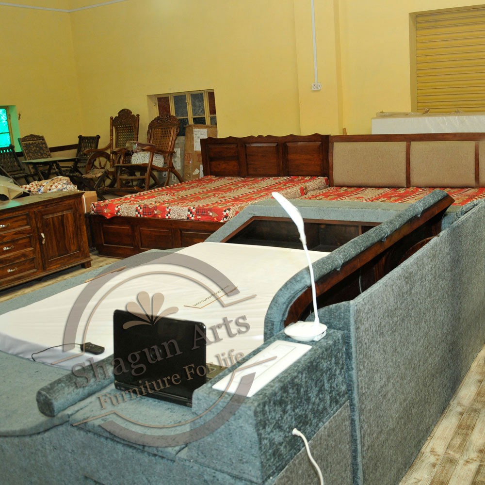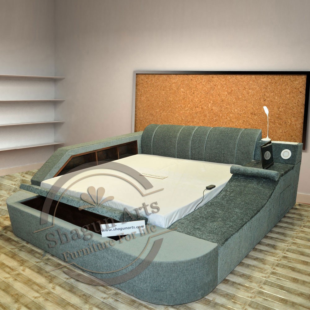Bed offers multi functions like 5 side storage, Bluetooth speakers, LED lamp, Massage chair, USB charger, Laptop stand, LED lights, safe lockers, electric plug points, etc that makes the bed unique as you will never find the exact match bed with the same all the functions in a single bed. Sleep and work comfortably with the classic styling, multi functional, multi storage safe lockers, strong support for your mattresses. The perfect balance of comfort, fashion, and features.